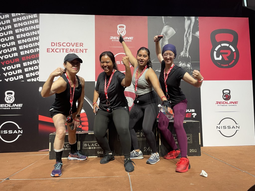 These were the exercises we were given for this event. Luckily, Redline created reels on Instagram to show us what needed to be done. In the relay event, each team member must do three consecutive exercises before passing the timing chip to the next team member. So the first person does 1 to 3, the second 4 to 6, the third 7 to 9, and the fourth 10 to 12.